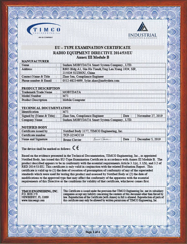 M71 CE Certificate